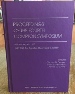 I was the lead editor, along with co-editors Mark Strickman and Jim Kurfess, of the 1997 Williamsburg Fourth Compton Symposium. This work summarized the tremendous discoveries of the Compton Gamma Ray Observatory, launched in 1991 when called the Gamma Ray Obseratory (GRO).