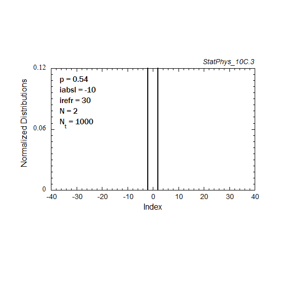 Figure A3. Evolving particle distribution in presence of an absorbing boundary, with p=0.52.