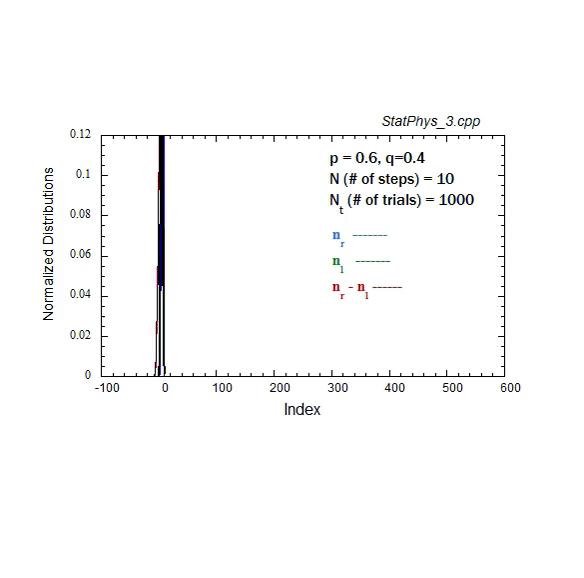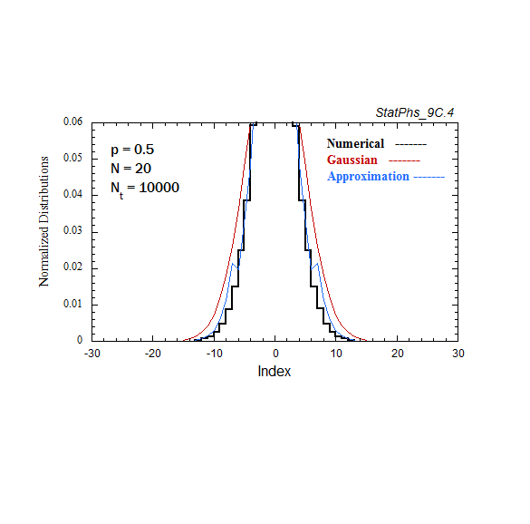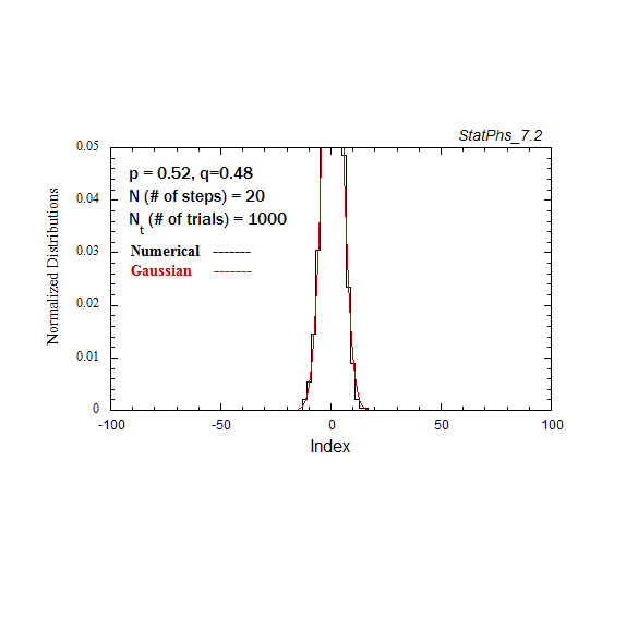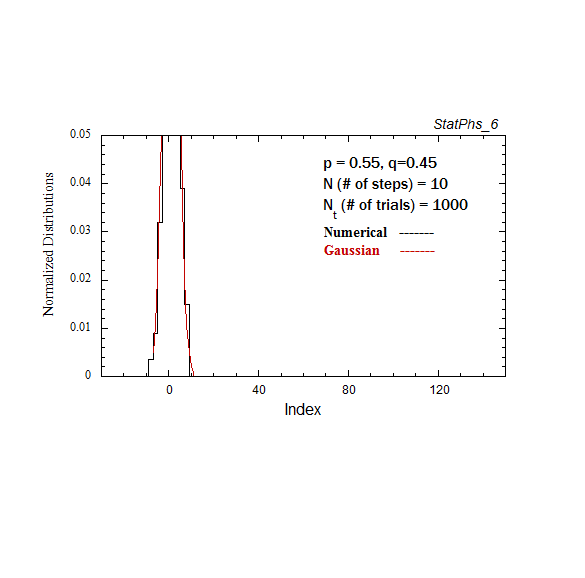 Figure A1. Formation and evolution of Gaussians from weighted binomial distribution for steps to right and left, and net displacement.