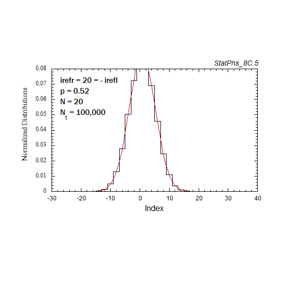 Figure A4. Evolving particle distribution in presence of two reflecting boundaries at -20 and +20.